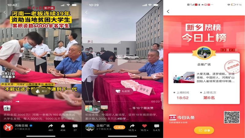 ▲堅持捐資助學大會不間斷,疫情并沒有阻擋我們愛心的傳遞,更加篤定我們對貧困大學生持續的關愛。“讓每個上不起學的寒門學子,都能圓夢大學。”崔培軍書記的深情夙愿,烙印在每一屆受資助貧困大學生的心田。