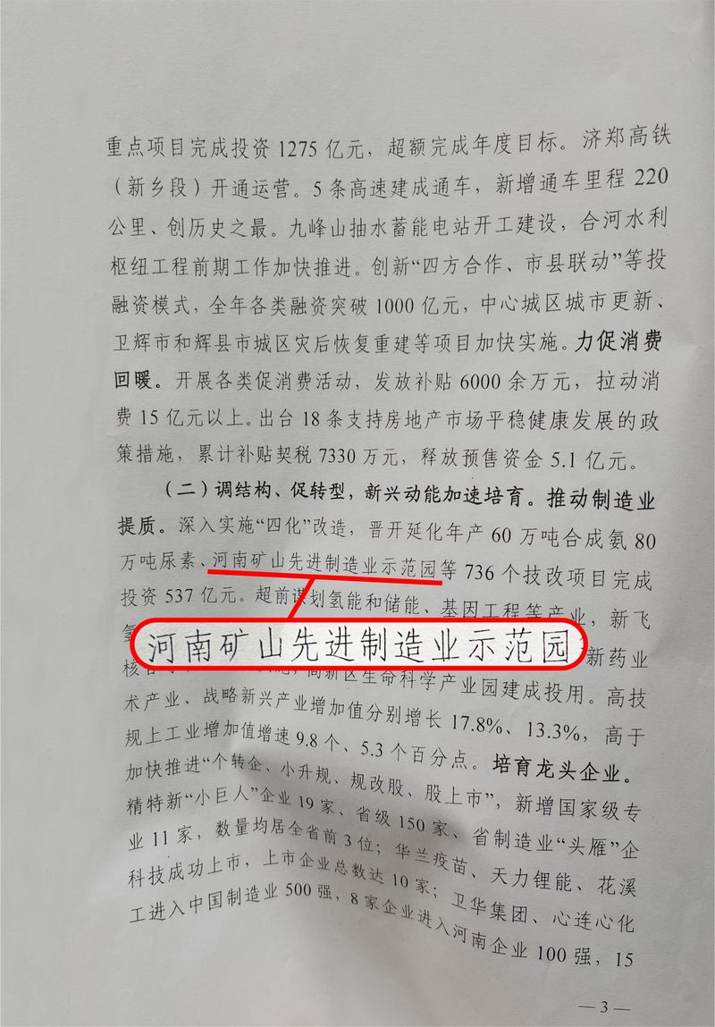魏建平市長在政府工作報告中指出:發(fā)揮起重機產(chǎn)業(yè)研發(fā)優(yōu)勢,持續(xù)推進(jìn)河南礦山起重生態(tài)產(chǎn)業(yè)鏈先進(jìn)制造業(yè)示范優(yōu)勢,實現(xiàn)高質(zhì)量發(fā)展。